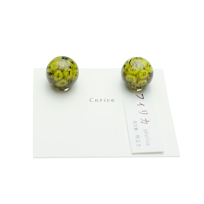 雑貨コリコ 花と言葉のアクセサリー フィリカ -Yellow-【イヤリングsize-Ⓛ】