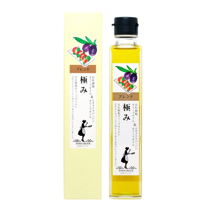 東洋オリーブの自社工場で精製したオリーブオイルとエキストラバージンオイルをブレンドしたオリーブオイルです。ほんのりとしたオリーブの香りと優しい風味でクセがなく、どんな料理にも使っていただけます。