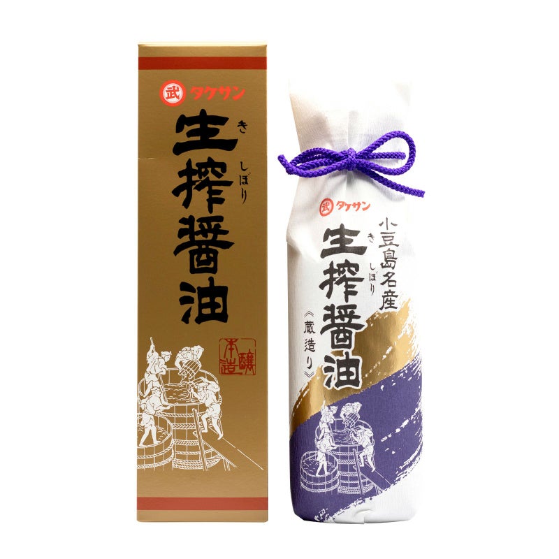 選び抜かれた丸大豆・小麦・天日塩を使い、杉桶(こが)の中で1年以上にわたって天然醸造したもろみをそのまま搾ったこいくち醤油です。